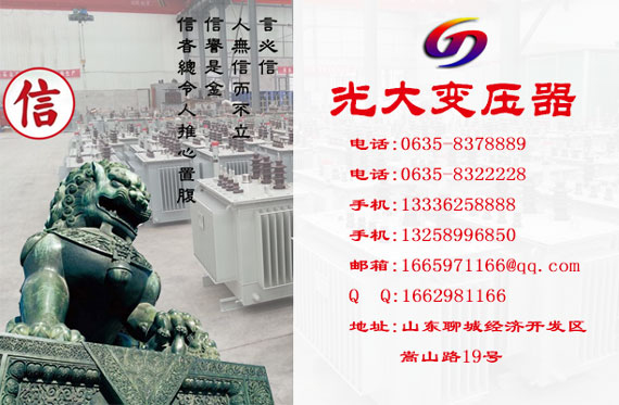 变压器厂家-光大变压器制造有限公司隶属于光大电气集团,是集团的核心企业之一。年生产变压器能力1000万KVA;主导产品有220kV级以下的S11/S13/S20/S22油浸式变压器、SCB10/SCB11/SCB12/SCB13/SCB14/SCB15/SCB18干式变压器、高过载变压器、非晶合金变压器、光伏发电变压器、水利发电变压器、整流变压器、电炉变压器、矿用变压器、较强过载能力电力变压器、油田用变压器、高原用变压器、煤矿用变压器等30多个系列,1000多种规格,以及非标产品的设计和制造。 公司主要产品有220kV电压等级及以下单台容量240000kVA及以下油浸式电力变压器、35kV以下干式变压器、20(10)kV双电压等级油浸式、干式变压器、级科技项目SBH15非晶合金变压器、35kV及以下的箱变、高低压开关柜以及单相柱上式油浸变压器等各类全系列电力变压器。